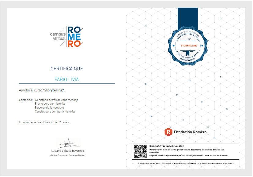 Por otro lado, interesante como en la plataforma de Campus Virtual Romero se tiene estos cursos de corta duración. Al ser cortos, es más probable que las personas los completen y eso motiva a continuar con los siguientes cursos.